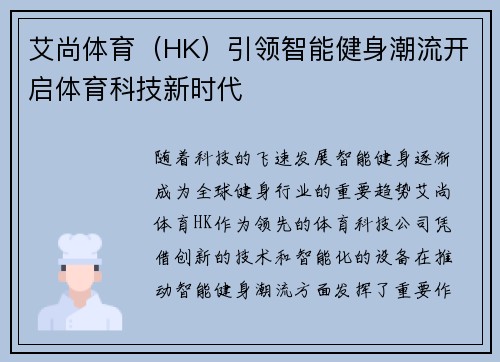 随着科技的飞速发展,智能健身逐渐成为全球健身行业的重要趋势。艾尚体育(HK)作为领先的体育科技公司,凭借创新的技术和智能化的设备,在推动智能健身潮流方面发挥了重要作用。本篇文章将详细探讨艾尚体育(HK)如何引领智能健身潮流,开启体育科技新时代。从技术创新、产品研发、用户体验、市场推广四个方面进行深入分析,揭示其在推动健身行业转型方面的贡献与影响。同时,也将从行业未来发展的角度,对艾尚体育(HK)在智能健身领域的地位做出总结,为体育科技的进一步发展提供思路。
